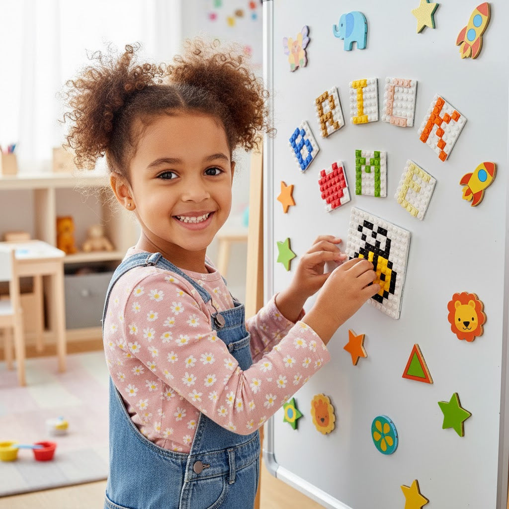 Build pixel art, spell out messages, make patterns, or just click bricks together for the joy of it. Then stick your creation straight onto your fridge, whiteboard, or any magnetic surface.