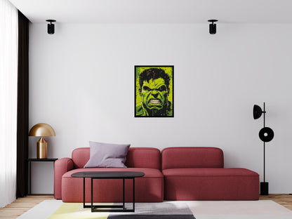 De Hulk, ook bekend als Bruce Banner, is een briljante wetenschapper wiens transformatie in de Hulk staat voor de oncontroleerbare kracht van woede. Ondanks zijn monsterlijke uiterlijk gebruikt de Hulk zijn kracht vaak ten goede en vecht hij samen met de Avengers om de wereld te beschermen. Dit mozaïek is een eerbetoon aan de dualiteit van zijn karakter - het kalme intellect van Bruce Banner en de rauwe kracht van de Hulk. Hang dit iconische portret in je huis of kantoor en vier de legende van de Hulk in ware artistieke stijl.